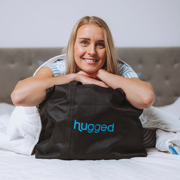 Du modtager din nye Hugged tyngdedyne i en flot og transporterbar bomuldspose. Du kan derfor have din tyngedyne med overalt, hvad end du skal på ferie, i sommerhus eller bare har brug for, at du kan have din dyne med fra A til Z.